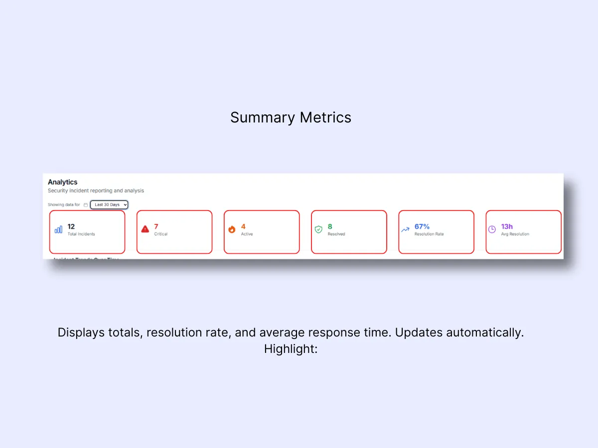 4. Incidents by SeverityA visual summary of how many incidents fall under each severity level. This helps you see whether your operations are stable or under stress.