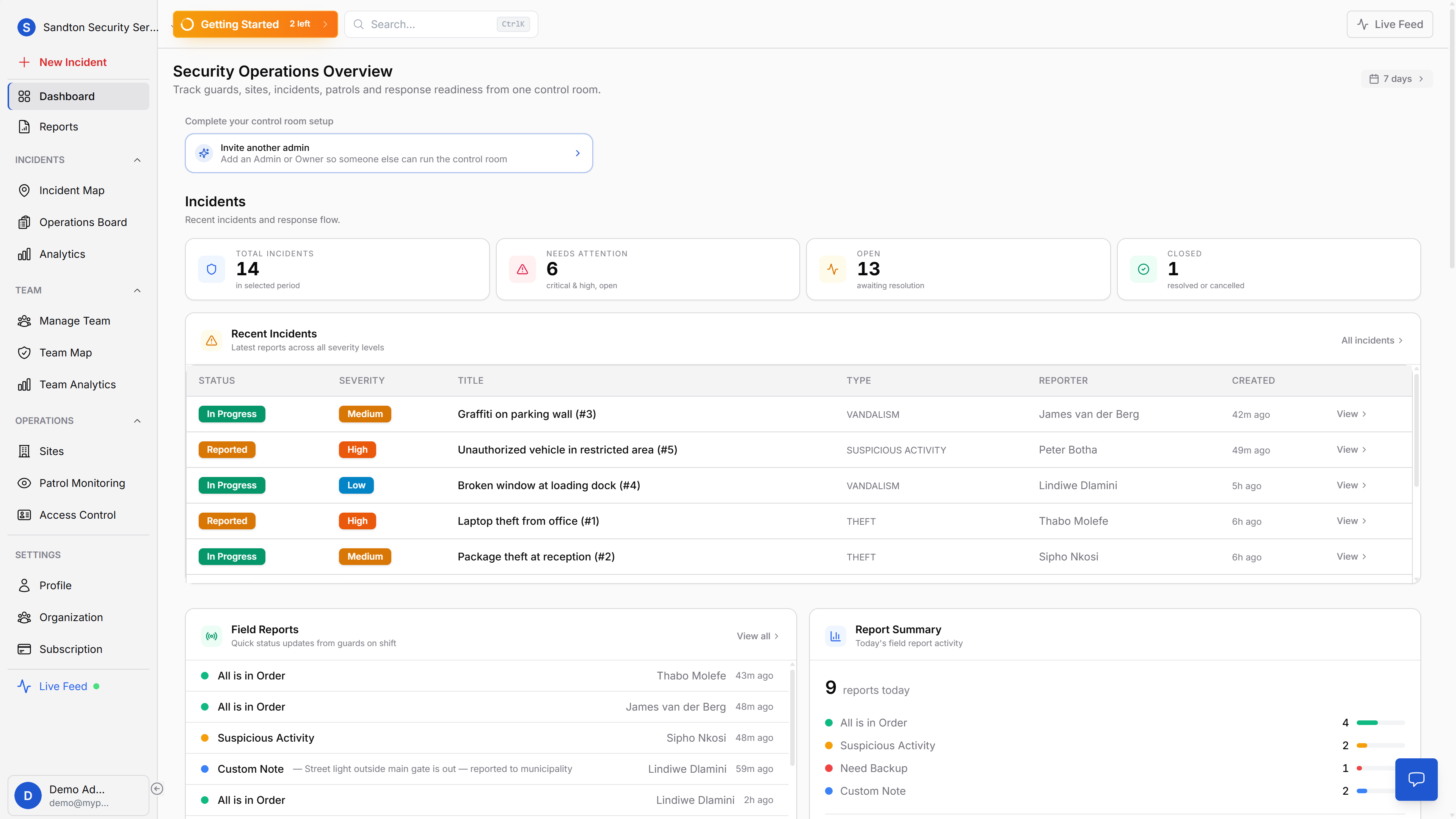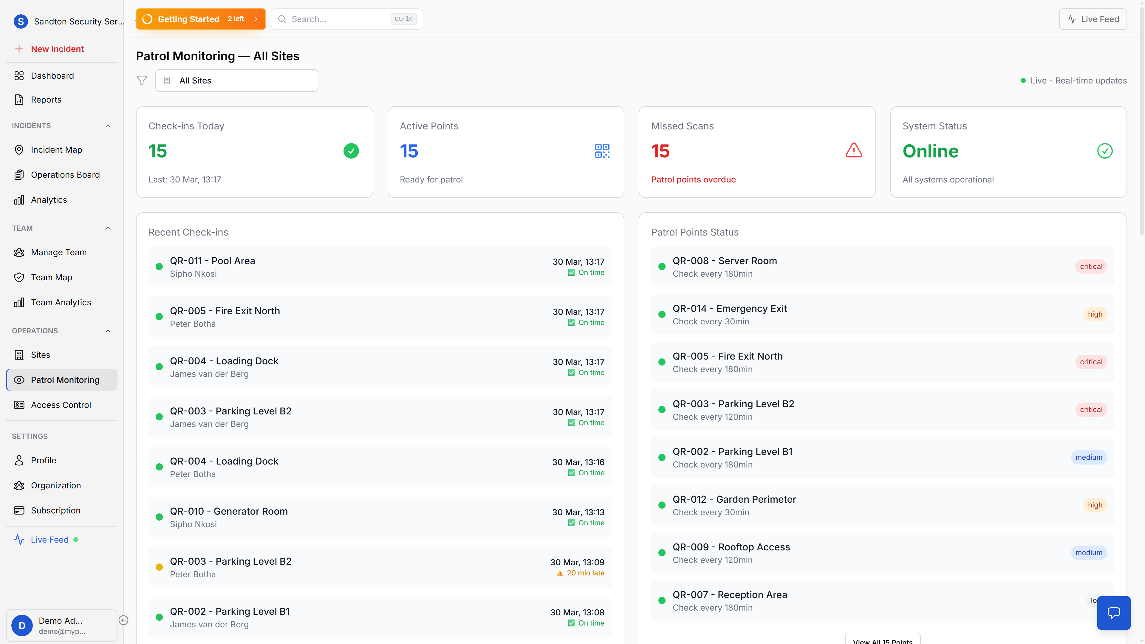 Incidents, guards, alerts, and patrol status on one live screen. Your control room gets full operational visibility without switching tools.